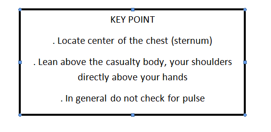 Lean over the casualty, with your arm straight compress vertically on the compression site directly on the sternum.