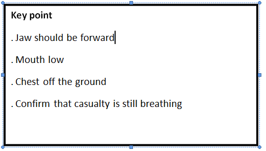 | If breathing is present, place casualty in the recoveryposition to maintain casualty airways open. |