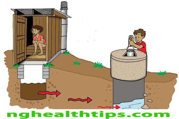 This condition occurs as a result of drinking water that are dirty or already contaminated water. Parts of the ways by water becomes contaminated includes, direct or indirect access of faeces into the water, oil spillage especially in oil region etc.